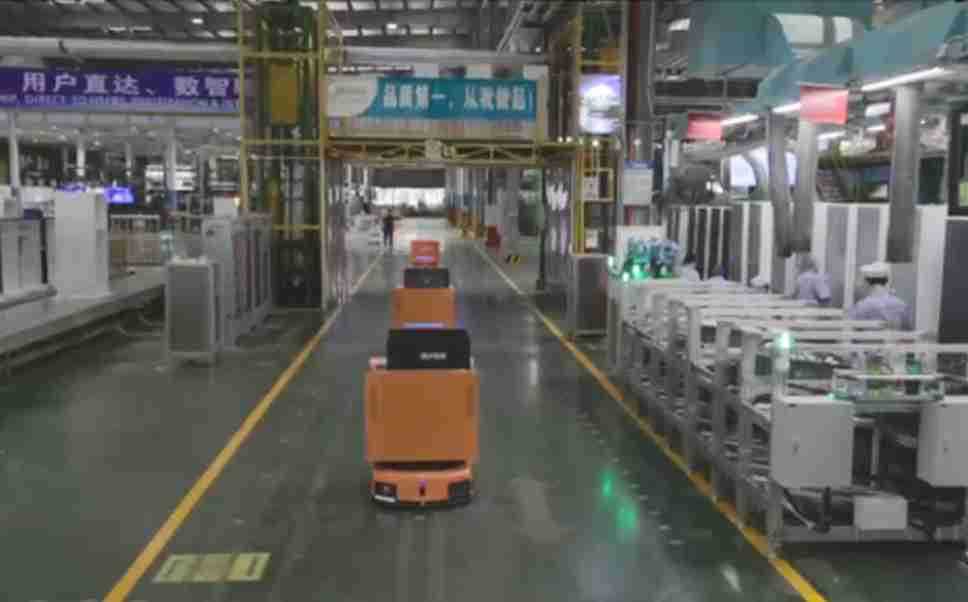 为车载冰箱物流配送打造的智能解决方案,,,,包含产中物流通过潜伏举升AMR搬运至线边,,,产后成品物流智能仓储,,,流程包含产中物流智能齐套入库,,,,线边安灯叫料AMR智能配送至线边,,,成品入库、、、、出库,,,通过无人堆高车机器人,,,智能仓储管理替代人工作业管理,,,,实现更高存储、、、、更高效率、、、、更具柔性化的解决方案。。。
