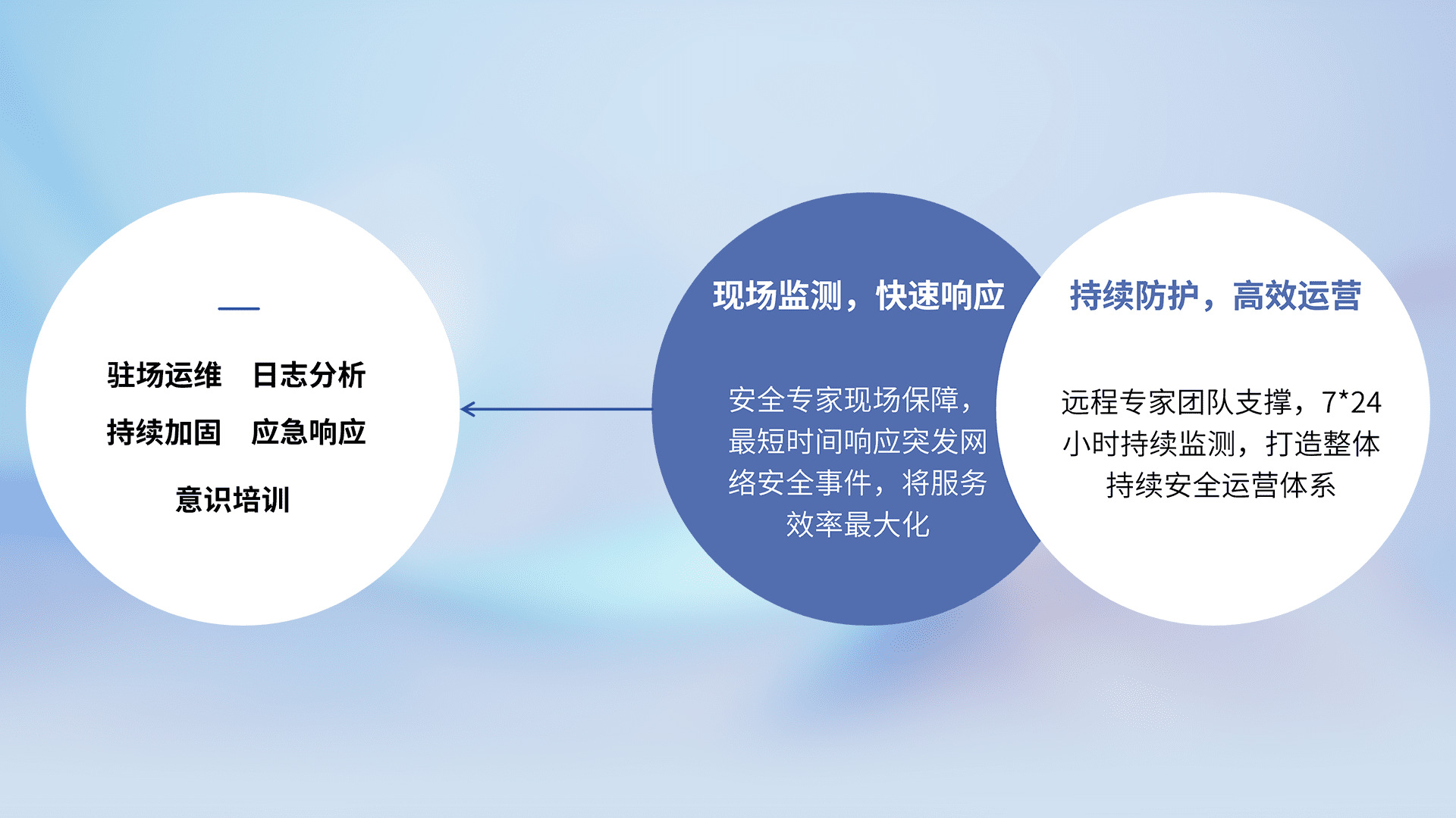 针对客户行业特性,,,,提供专属的一站式安全管理服务,,帮助客户全面感知网络空间威胁,,,通过安全专家的线上、、、线下防护支持,,,实现风险闭环,,将安全保障常态化,,为客户打造常态化安全运维运营服务。。。。